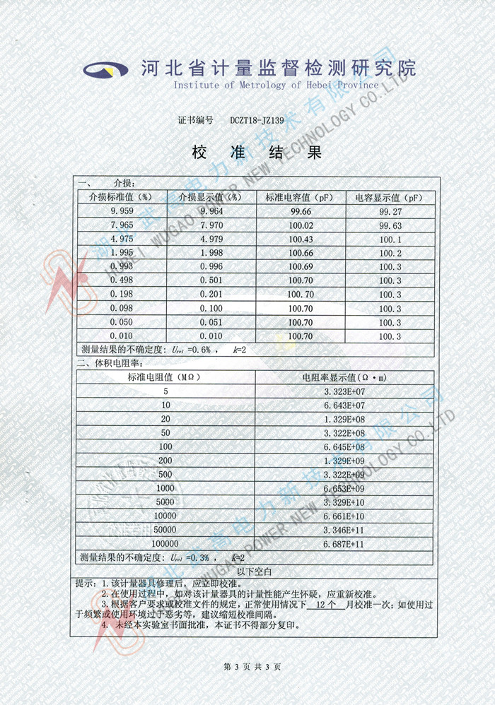 10、空电极杯校准功能。测量空电极杯的电容量和介质损耗因数,以判断空电极杯的清洗和装配状况。校准数据自动保存,以利于相对电容率和直流电阻率的精确计算。