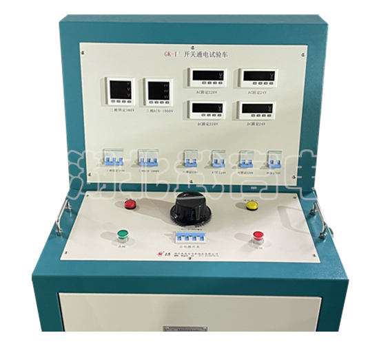 GK-I高低压开关柜通电试验台,别称高低压开关柜通电试验台车,用于高低压开关柜生产厂家对所生产的高低压开关柜进行出厂前的各项通电试验。它能提供各种交、直流电源,便于对开关柜的检测,提高工作效率。